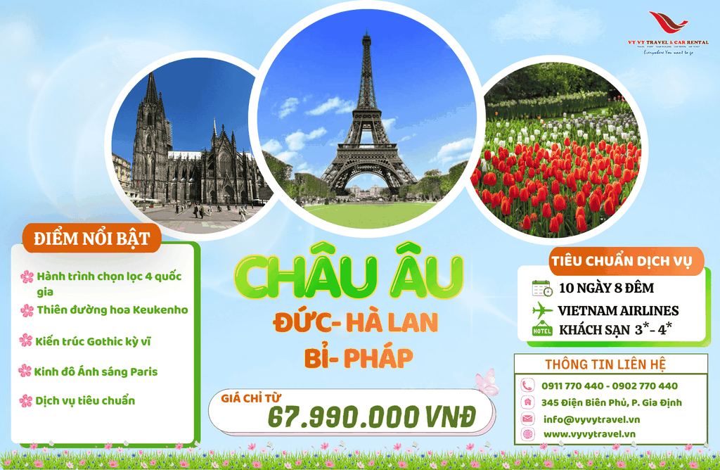 - "Kinh đô Ánh sáng" – Paris là biểu tượng của sự sang trọng, thời trang và nghệ thuật lãng mạn bậc nhất thế giới. Paris cuốn hút du khách bởi vẻ đẹp kiêu sa của tháp Eiffel và sự uy nghi của Khải Hoàn Môn nằm trên đại lộ Thiên Đàng Champs Élysées rực rỡ. Mỗi góc phố Paris đều chứa đựng những giá trị lịch sử và nghệ thuật vô giá, từ những quán cà phê ven đường thơ mộng đến dòng sông Seine êm đềm chảy qua lòng thành phố. Paris không chỉ là một điểm đến, mà còn là một niềm mơ ước, một trải nghiệm tinh tế về phong cách sống và văn hóa phương Tây.
