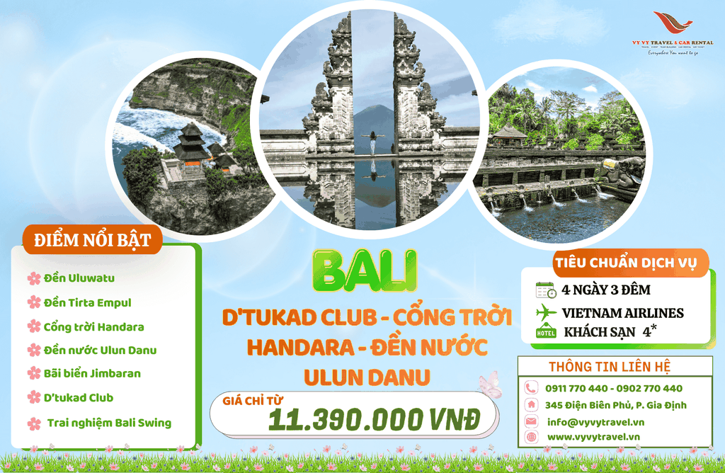 Quý khách tập trung tại sân bay Tân Sơn Nhất ga đi quốc tế, Trưởng Đoàn hướng dẫn làm thủ tục hàng không và đáp chuyến bay đến Bali.