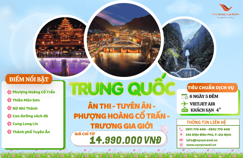 Trưởng đoàn đón Quý khách tại sân bay Tân Sơn Nhất và làm thủ tục khởi hành đi Ân Thi trên chuyến bay VJ 3674 SGN – ENH 14:35 – 19:00 của hãng VIETJET.